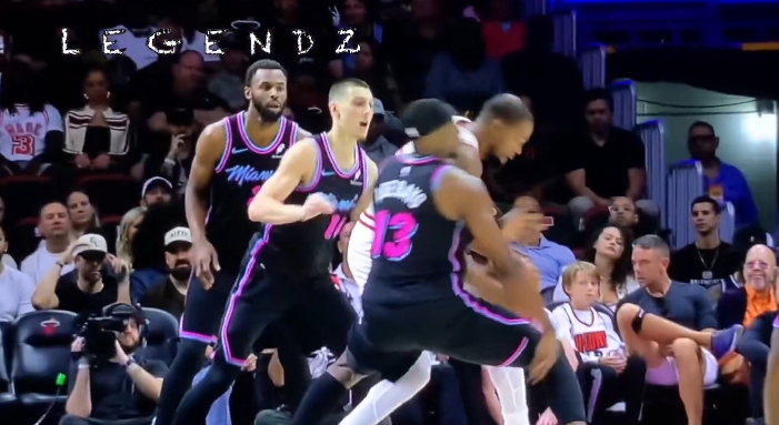 距离首节结束还剩5分钟时,热火就开始包夹杜兰特,希罗这时候就开始喷垃圾话。