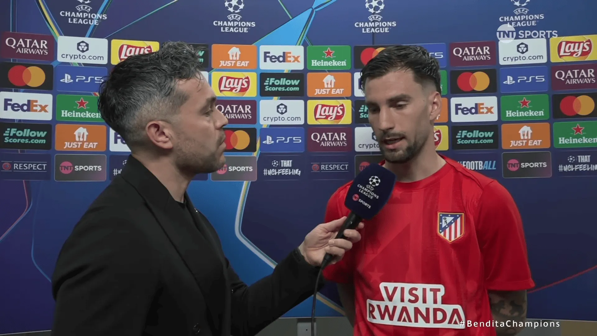 虎扑04月09日讯 欧冠1/4决赛首回合,马竞客场2-0战胜巴萨,巴埃纳赛后接受了TNT体育墨西哥频道的采访。